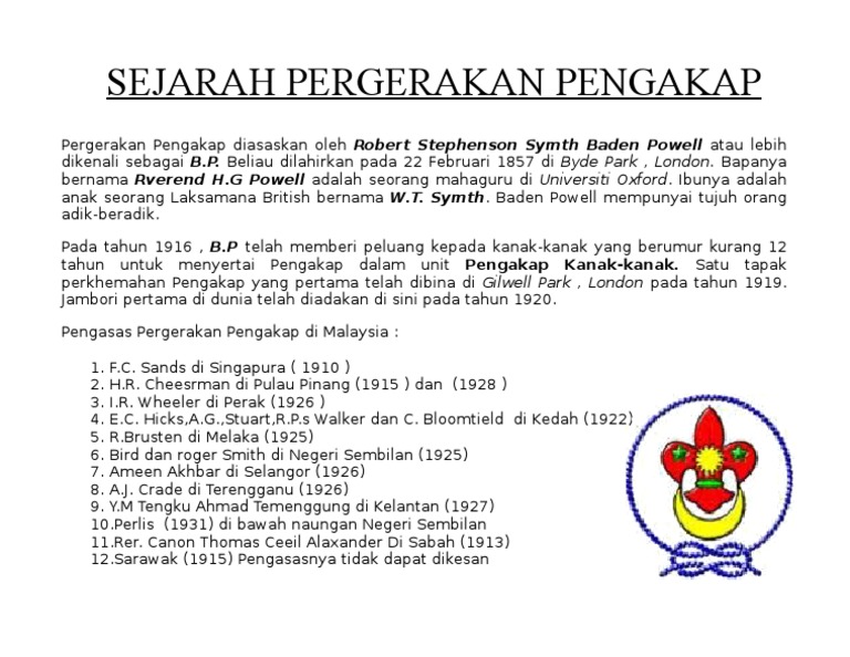 1 Peraturan pakaian seragam. Share e-BUKU LOG UB PENGAKAP everywhere for free. Sejarah pengakap di malaysia dan sejarah pengasas pengakap lord baden powell sejarah pengakap di malaysia selepas dua tahun pengakap diasaskan oleh lord baden powell di england seorang peneroka pengakap dari london bernama fcsands telah.