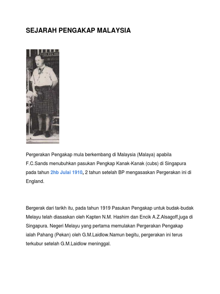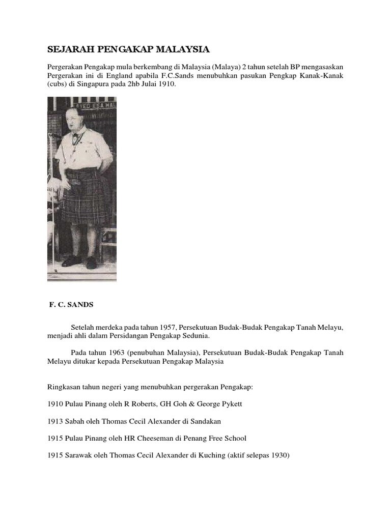 Sejarah Permulaan Pergerakan Pengakap Peringkat Malaysia Pdf