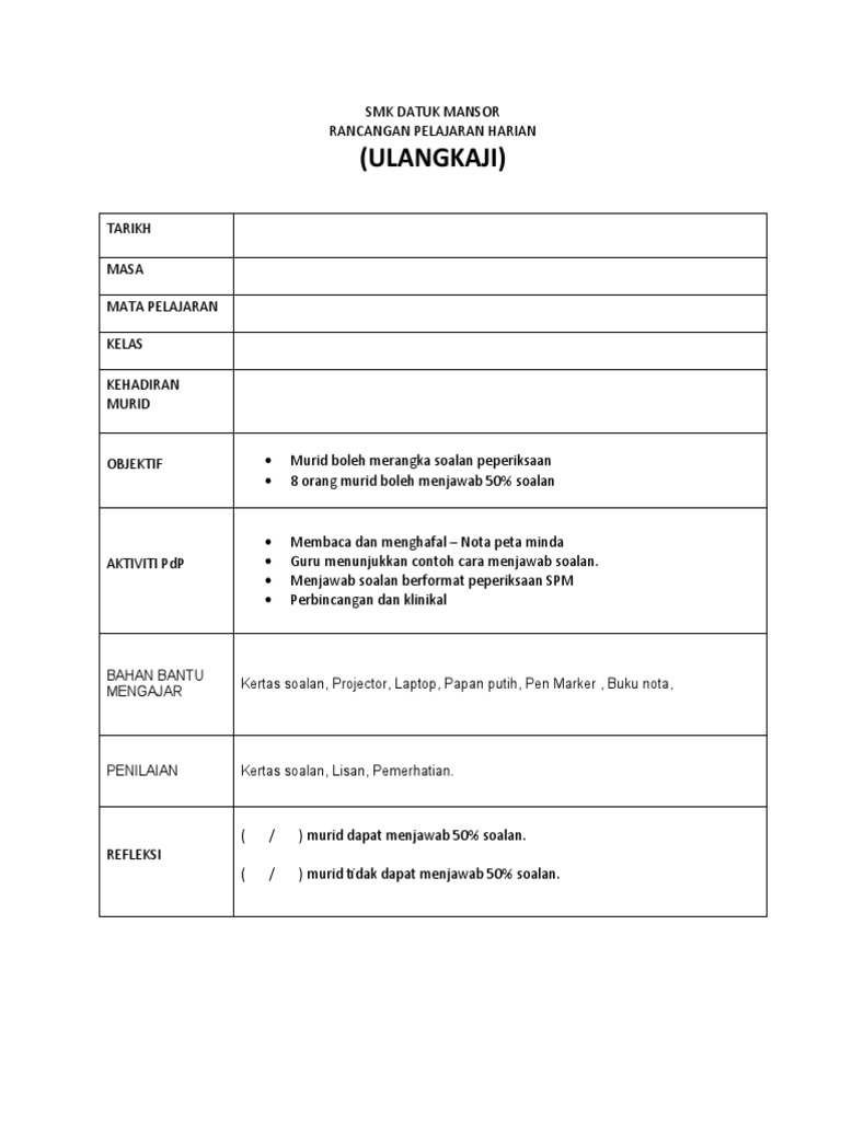 Contoh Rph Abad 21 Cara Buat Rancangan Pengajaran Harian Portal Cikgu
